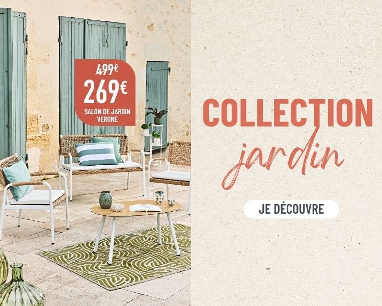 Et lorsque l’été arrive, laissez-vous séduire par notre collection de mobilier de jardin et décoration extérieure : salons de jardin, luminaires d’extérieur, coussins et accessoires pour embellir votre terrasse, balcon ou jardin et créer un espace convivial en plein air.