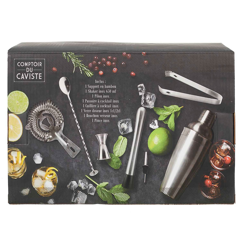 05 56 69 68 67-contact@fabriquedestyles.frCoffret de cocktail en acier argenté et bambou
