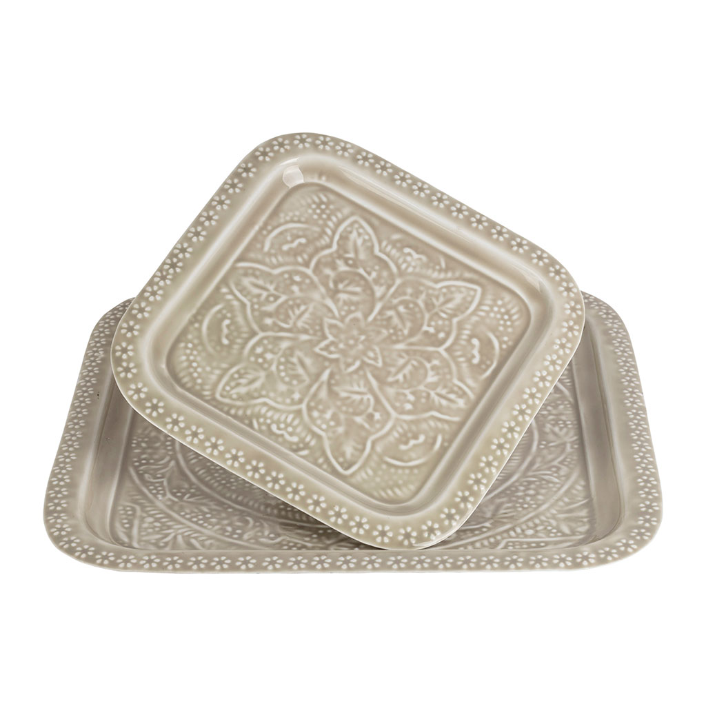 Découvrez notre ensemble de deux plateaux carrés en fer grège de 41x41 cm, une addition polyvalente et stylée pour votre collection d'arts de la table.