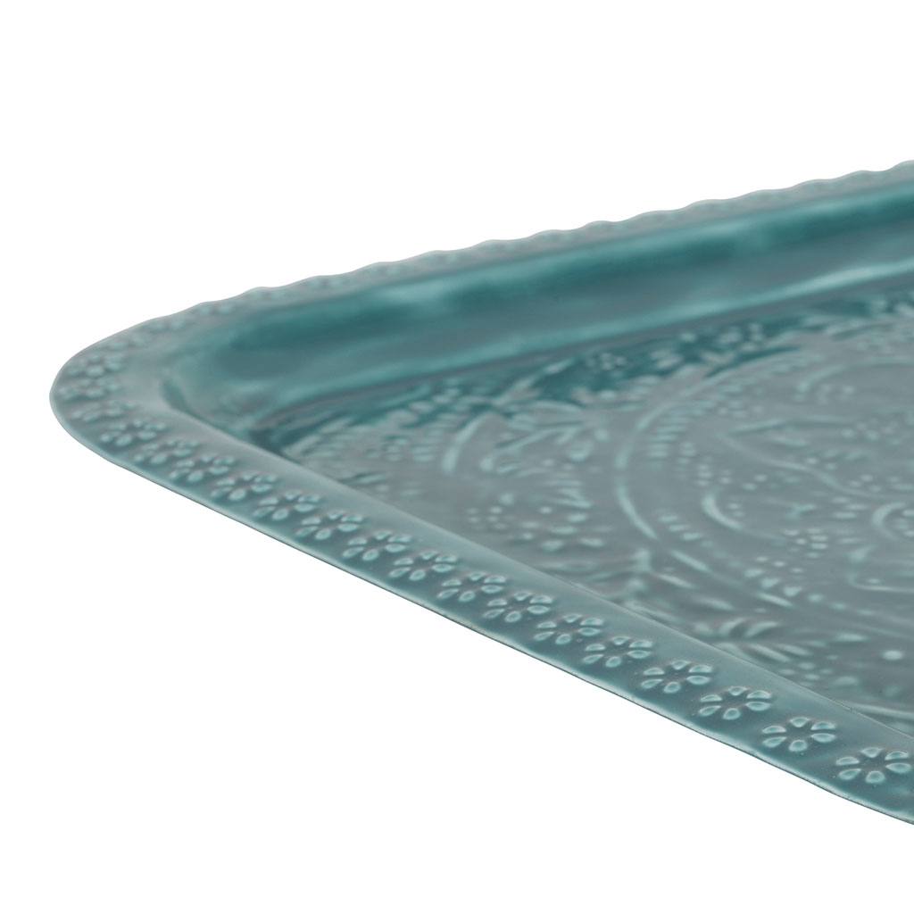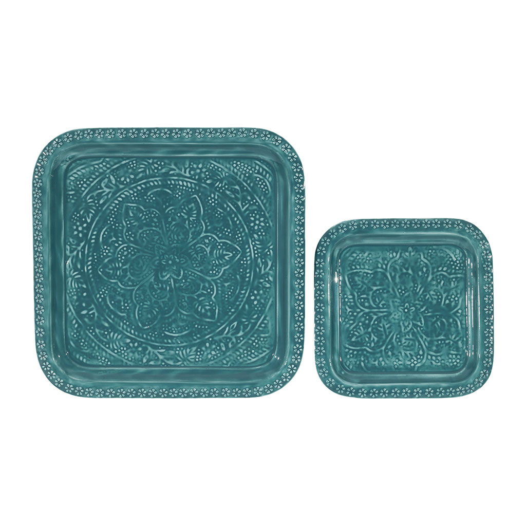 Ce duo de plateaux carrés Arabise en fer turquoise est un véritable concentré de charme artisanal.