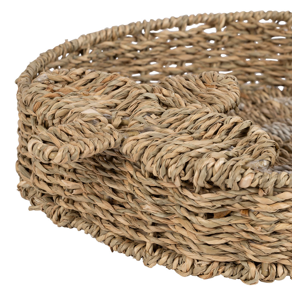 Invitez l'esprit des beaux jours chez vous avec ce charmant plateau en jonc de mer naturel et blanc, une pièce unique qui égayera à coup sûr votre espace de vie.