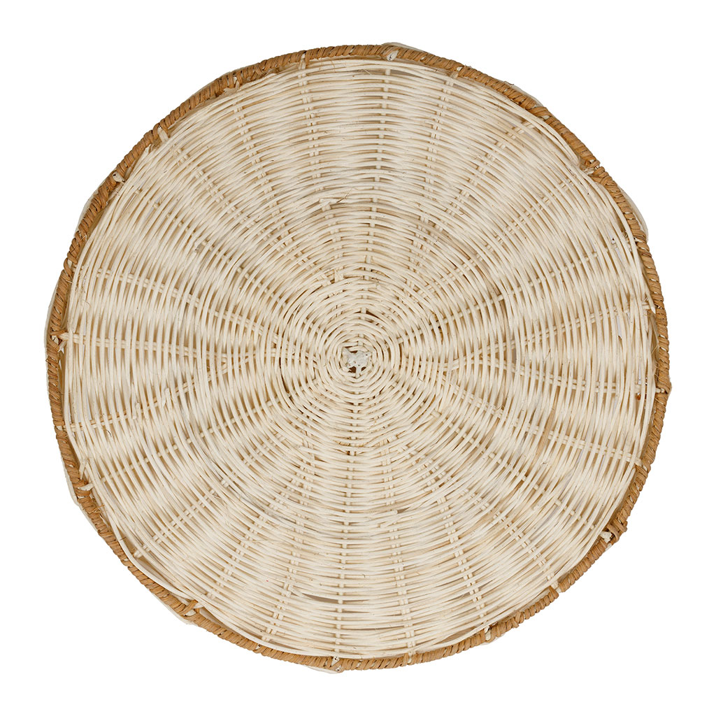 Transformez votre espace de repas avec ce plateau sur pied en rotin blanc cassé d'un diamètre de 34 cm.