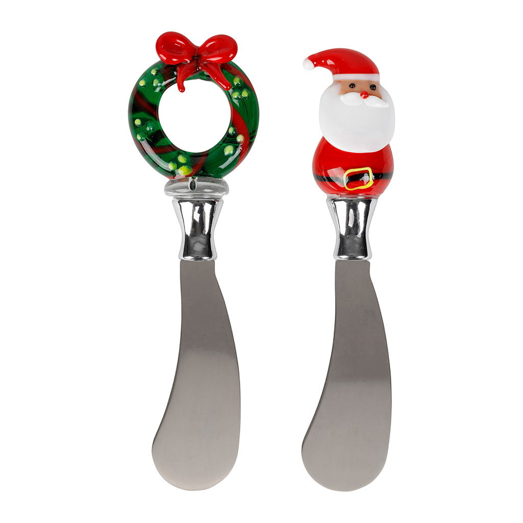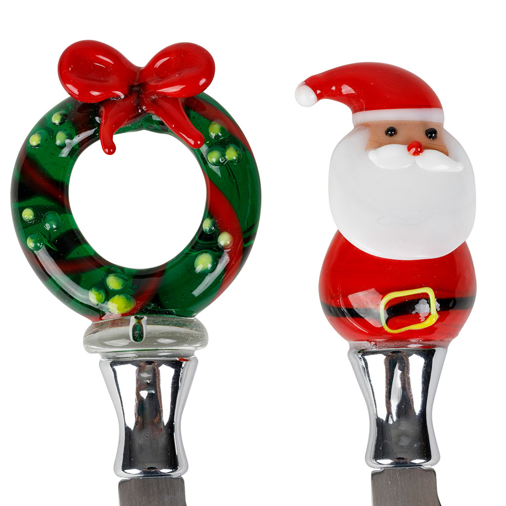 05 56 69 68 67-contact@fabriquedestyles.frCouteaux à beurre noël (x2) en verre et inox rouge et vert