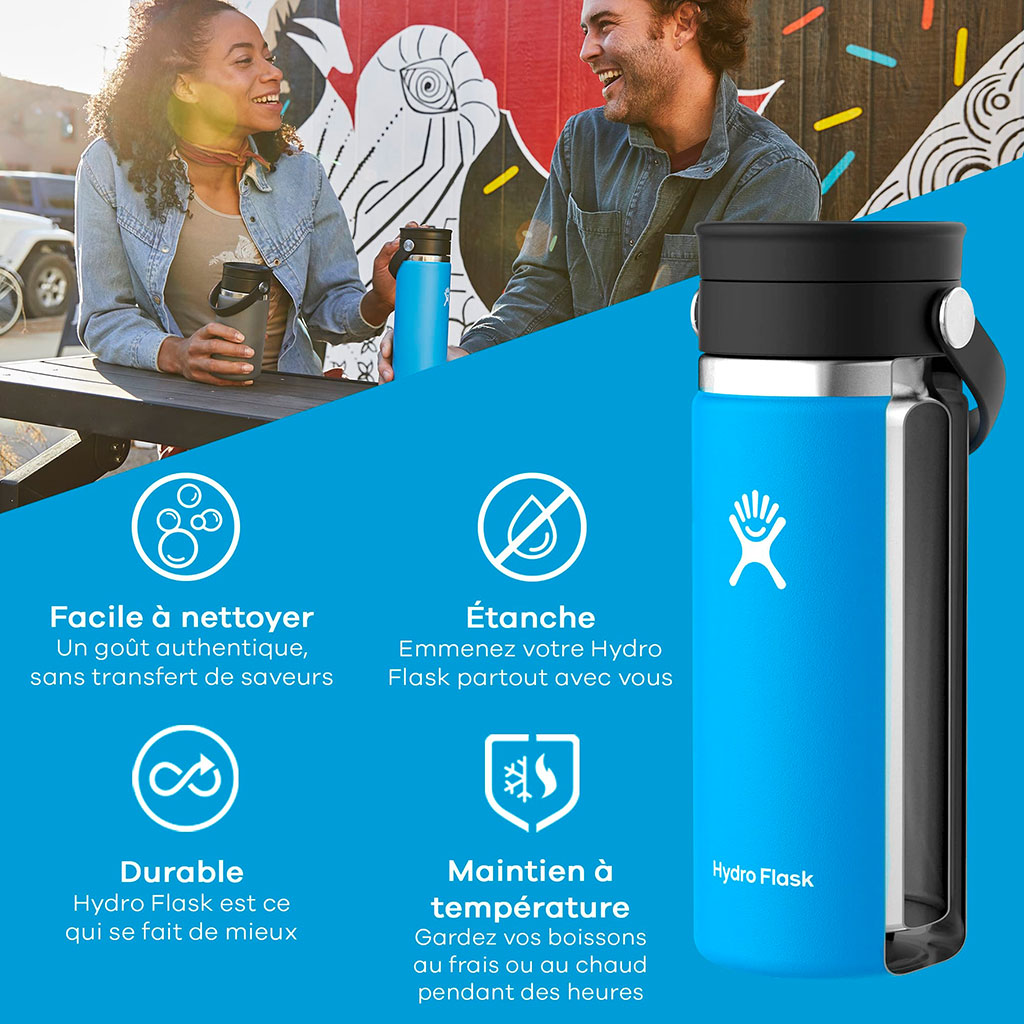 Ce récipient est doté d'un bouchon flexible noir qui offre un aspect pratique pour éviter les éclaboussures et garder votre breuvage à température idéale plus longtemps.