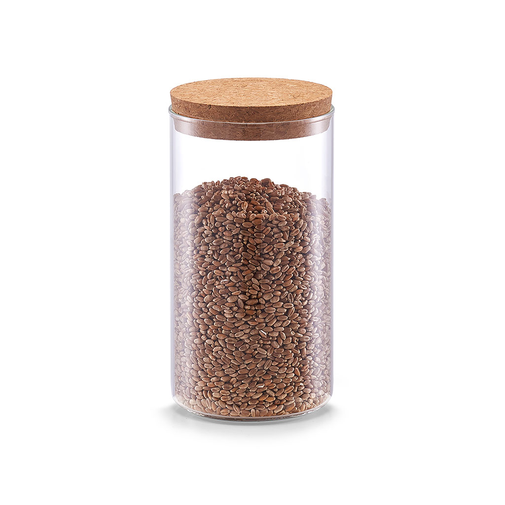 Découvrez notre bocal en verre de 1.1L avec un couvercle en liège, parfait pour conserver vos aliments frais tout en ajoutant une touche d'élégance à votre cuisine.