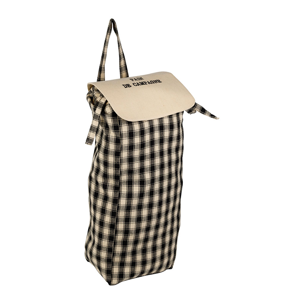 Découvrez le sac à pain en coton damier noir, un accessoire essentiel pour les amateurs de bons petits-déjeuners et de repas conviviaux.