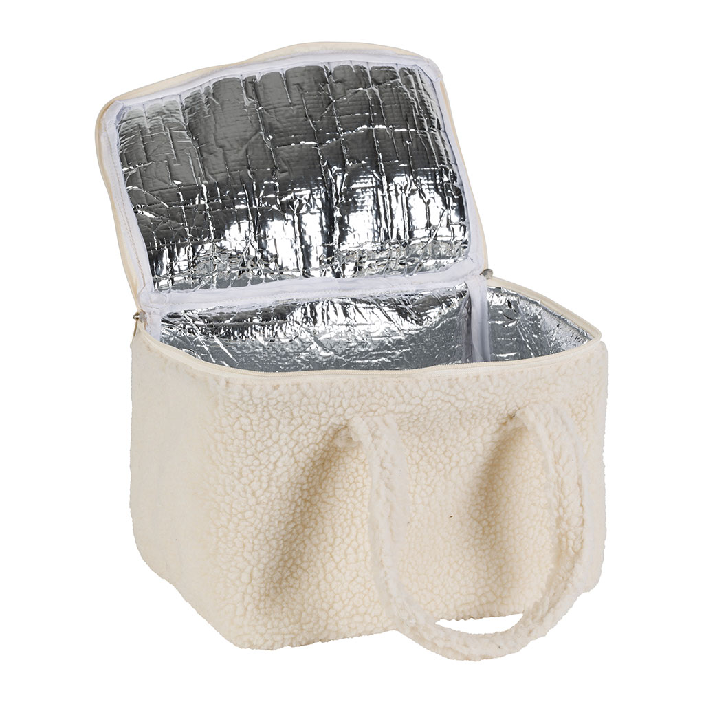 Ce sac isotherme en tissu bouclette écru est conçu pour garder vos repas frais et savoureux, où que vous soyez.