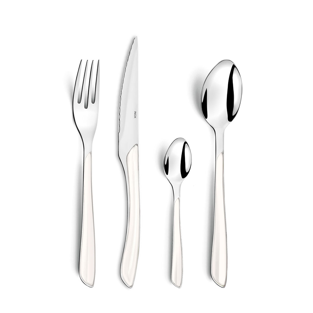 05 56 69 68 67-contact@fabriquedestyles.frMénagère 24 pièces en acier blanc - Eclat