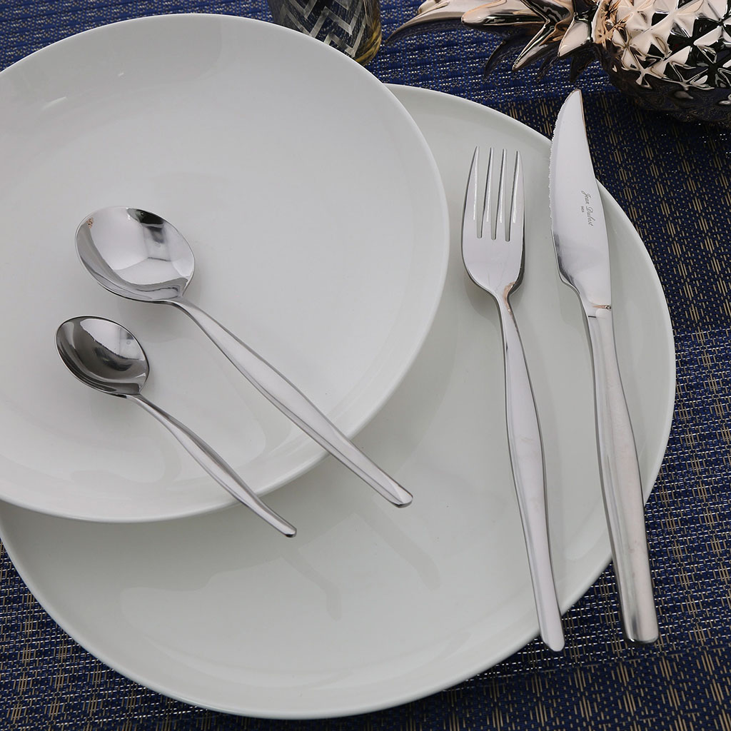 Découvrez la nouvelle manière de sublimer vos repas avec notre ménagère 24 pièces en acier inoxydable argent.