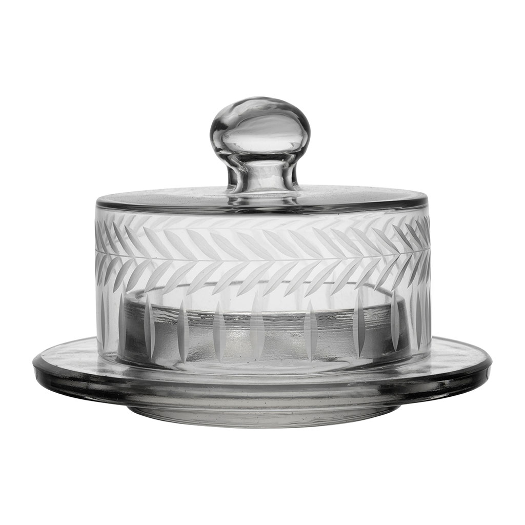 Ajoutez une touche de charme simple et authentique à votre table avec le beurrier rond en verre transparent d14cm de la collection Azelie.