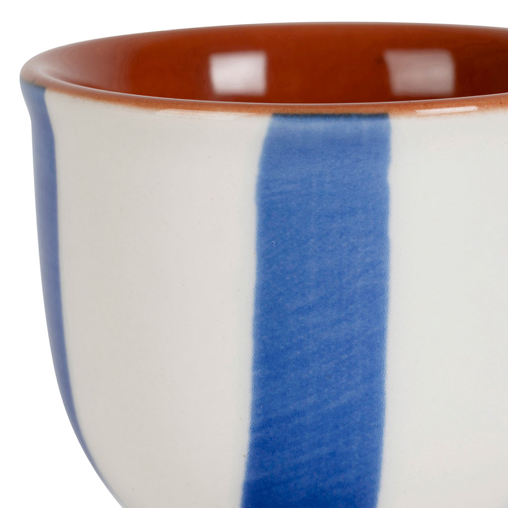 Découvrez l'originalité et le charme du coquetier en grès rayé indigo et blanc de la collection Alaria, un incontournable pour embellir vos petits-déjeuners.