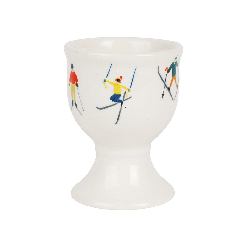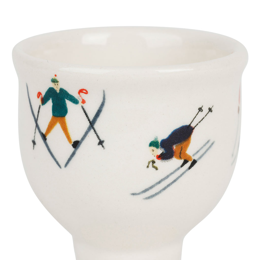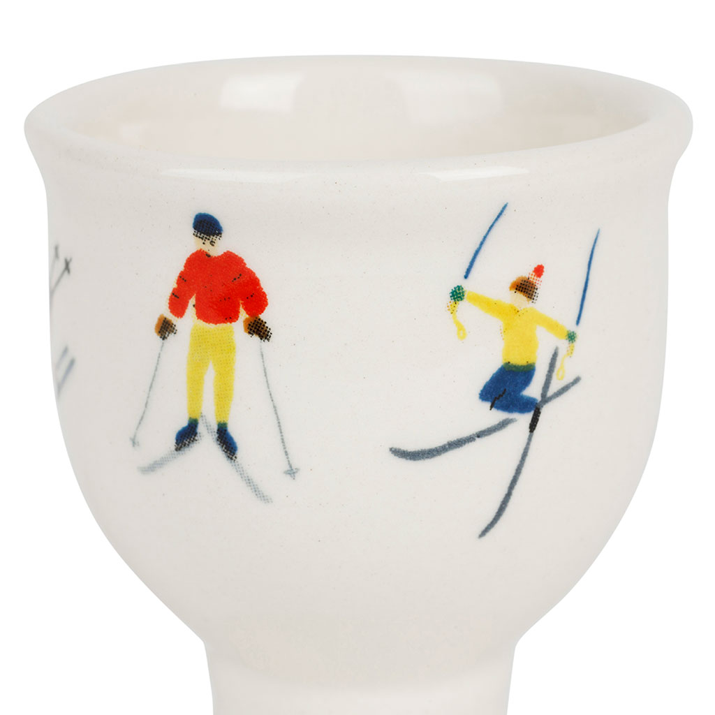 Transformez votre petit-déjeuner en une aventure alpine avec ce coquetier skieur en faïence blanche.