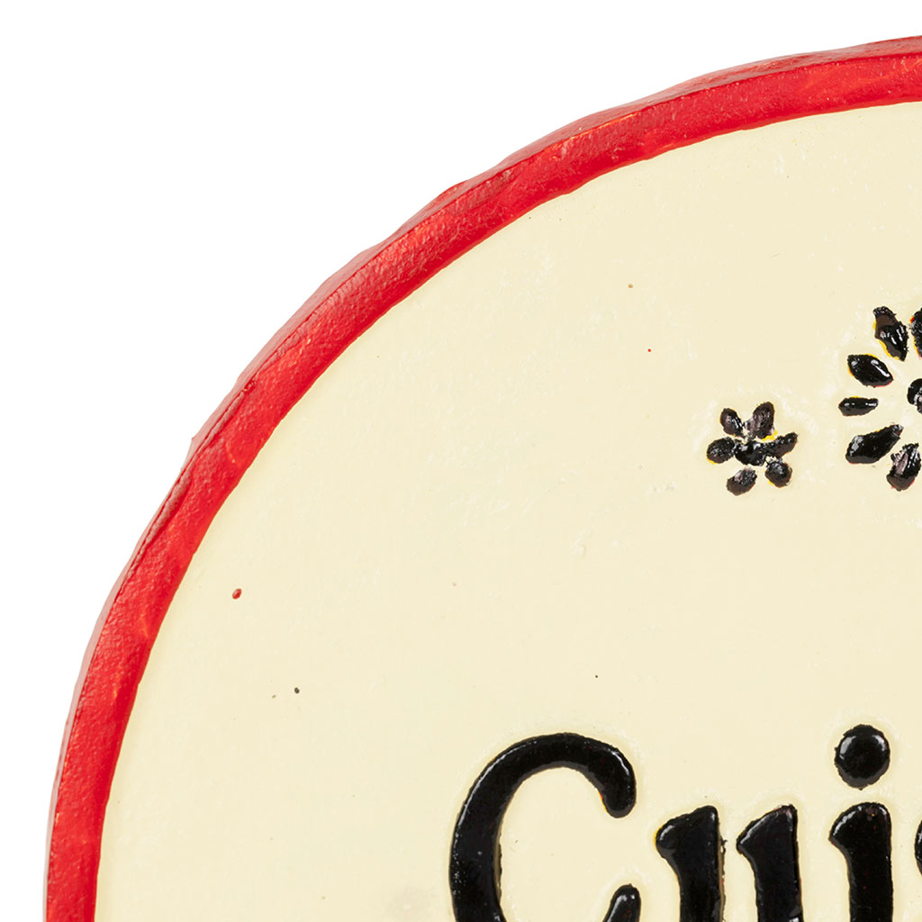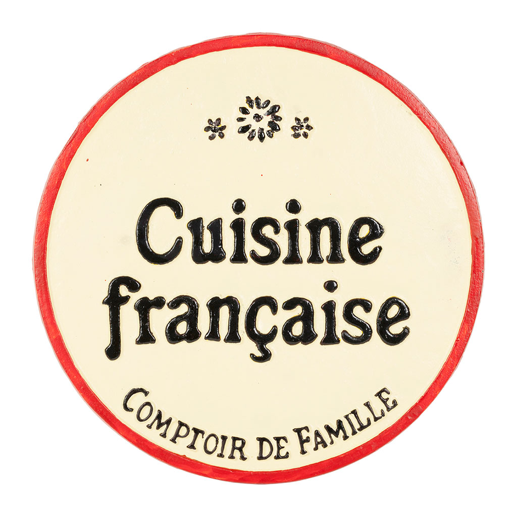 05 56 69 68 67-contact@fabriquedestyles.frDessous de plat en fonte "Cuisine française" ivoire et rouge d25cm