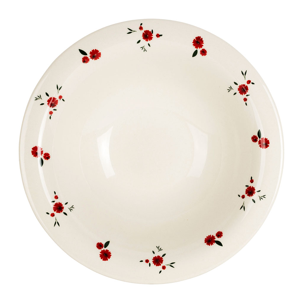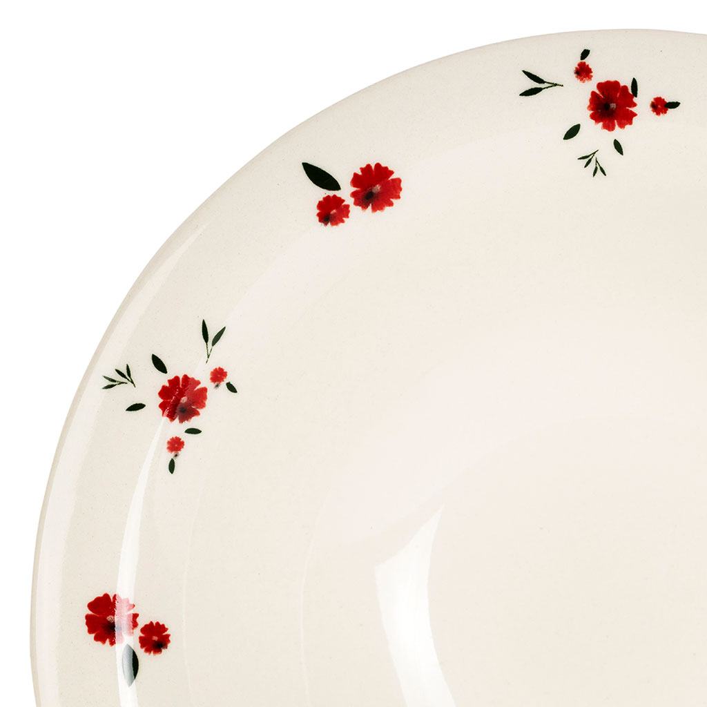 Ajoutez une touche florale et élégante à vos repas avec l’assiette creuse en faïence "Pâquerette rouge" de 20 cm.