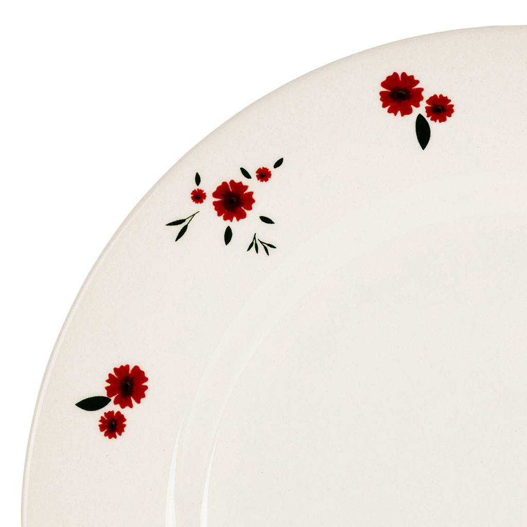 Ornée d’un motif délicat de pâquerettes rouges, elle évoque la fraîcheur des jardins fleuris et s’intègre facilement dans une décoration de table champêtre ou festive.