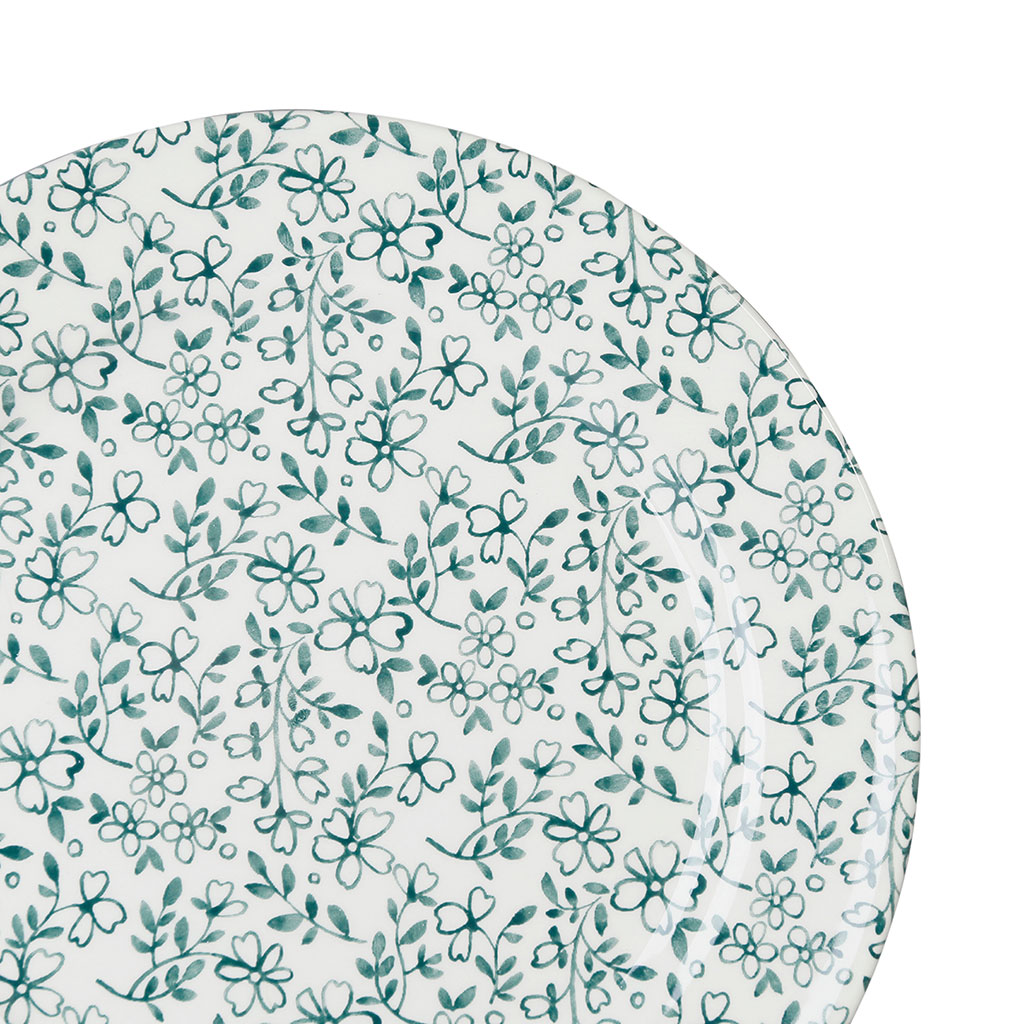 05 56 69 68 67-contact@fabriquedestyles.frAssiette plate en faïence vert d26cm - p'tites fleurs