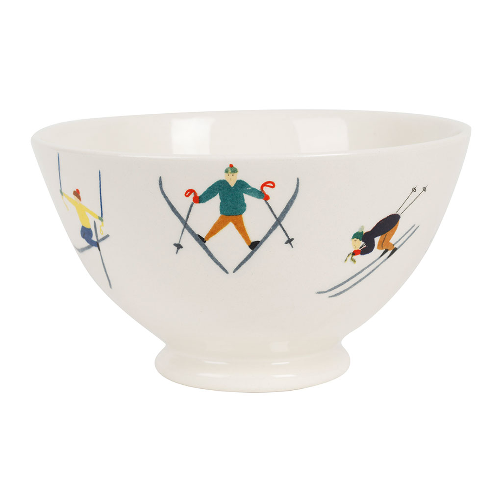 Ce bol en faïence blanche, d'une capacité généreuse de 75cl, est un hommage à l'univers du ski.
