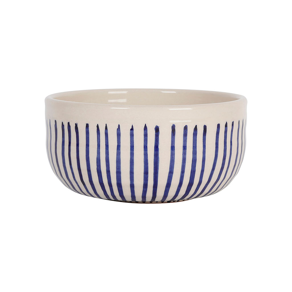 Ajoutez une touche d'artisanat et de couleur à votre table avec la coupelle en terre cuite rayée bleu Lisia.