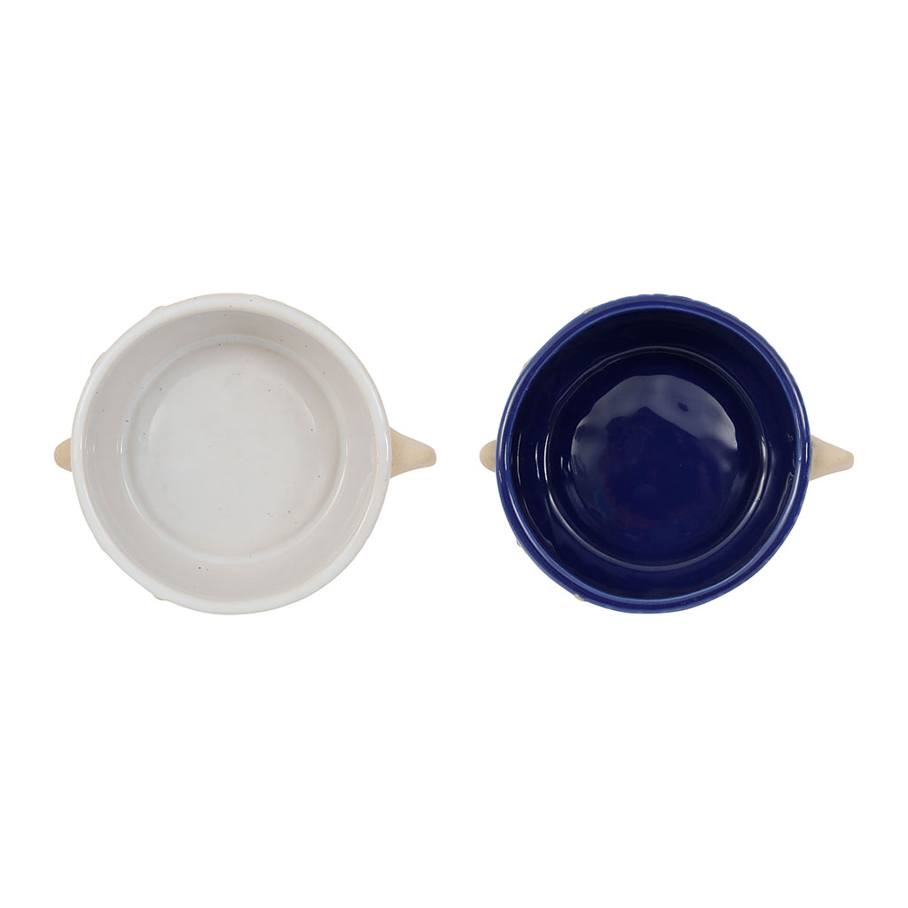 Découvrez ce superbe lot de 2 coupelles en grès blanc et bleu en forme de gros poisson, mesurant 14x12cm, qui apportera une touche marine à votre table.