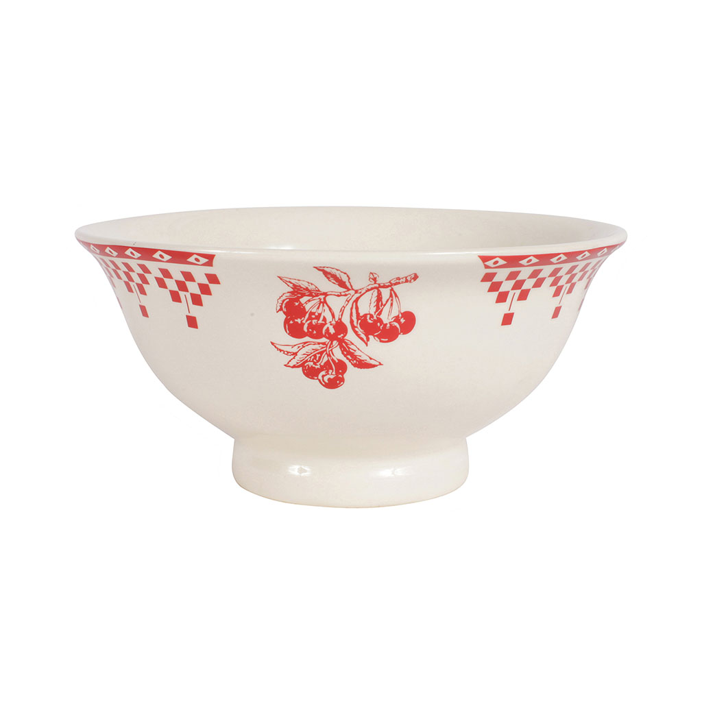 05 56 69 68 67-contact@fabriquedestyles.frCompotier en faïence blanc et rouge - damier