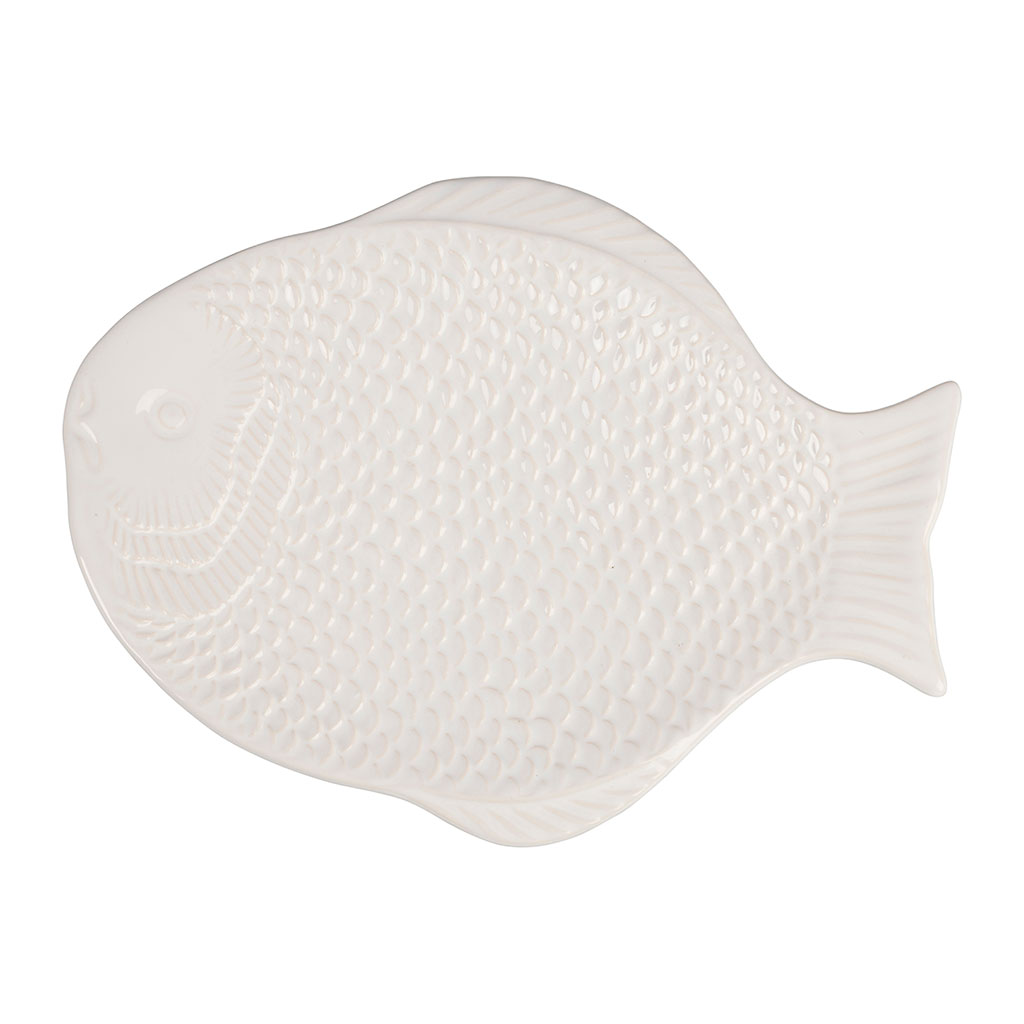 05 56 69 68 67-contact@fabriquedestyles.frPlat blanc 29.5x21.5cm en faience - poisson