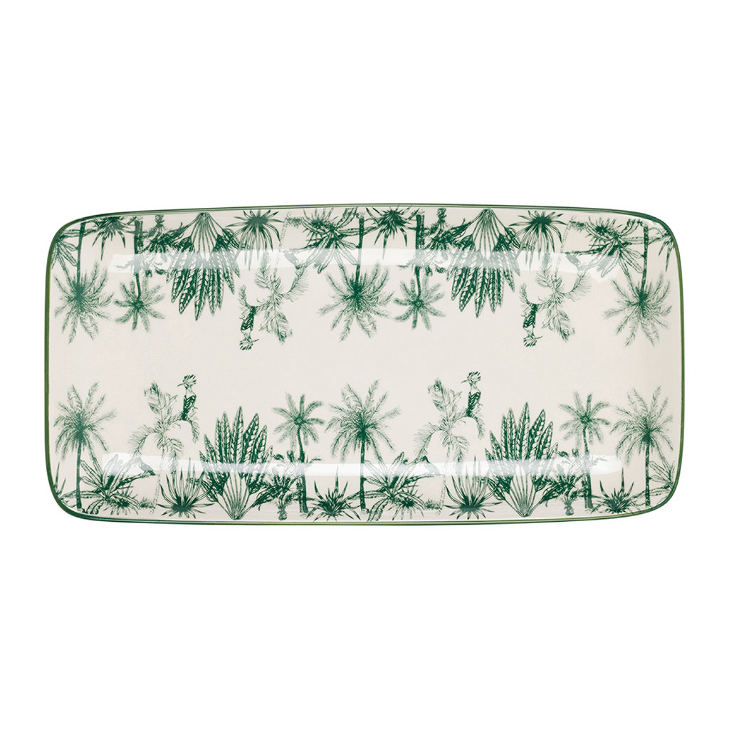 05 56 69 68 67-contact@fabriquedestyles.frPlat en grès blanc et émeraude 31x16cm - Palmi