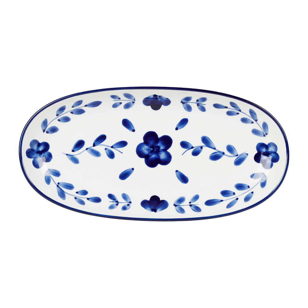 05 56 69 68 67-contact@fabriquedestyles.frPlat ovale en grès indigo et blanc 31x16cm - Bellagio
