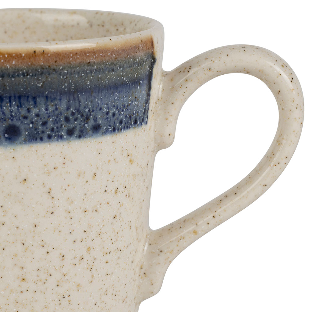 Apportez une touche artisanale et élégante à vos pauses café avec ce mug en faïence indigo et beige Victoria de 38cl.