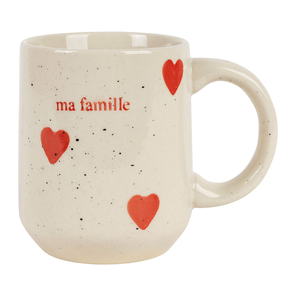 05 56 69 68 67-contact@fabriquedestyles.frMug en grès blanc et rouge moucheté 35cl - Famille