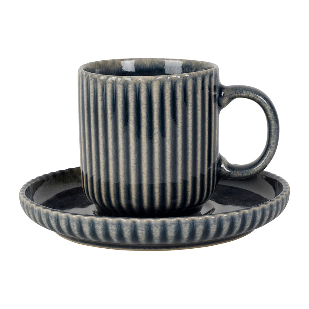 05 56 69 68 67-contact@fabriquedestyles.frTasse à thé et sous-tasse en grès rayé bleu 20cl - Carla