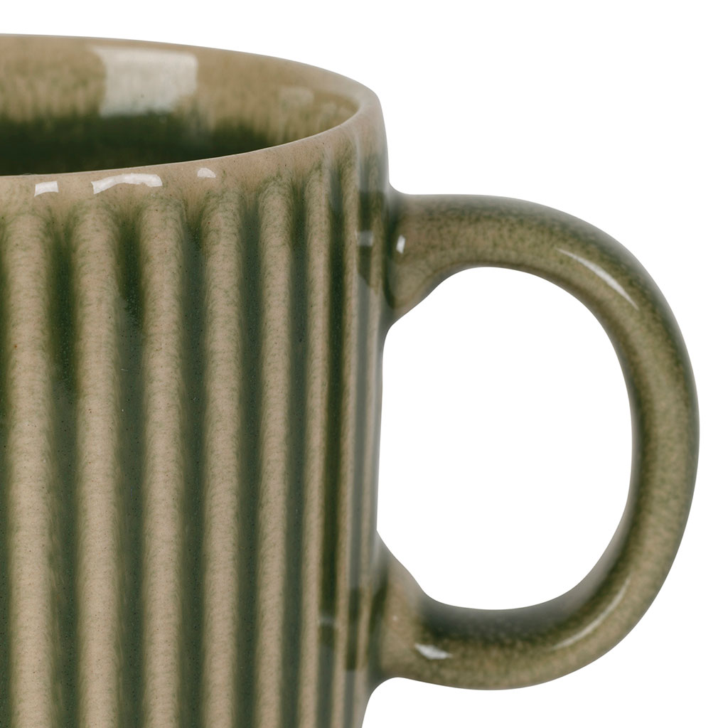 Offrez-vous un moment de détente avec cette délicieuse tasse à thé accompagnée de sa sous-tasse en grès rayé sauge.