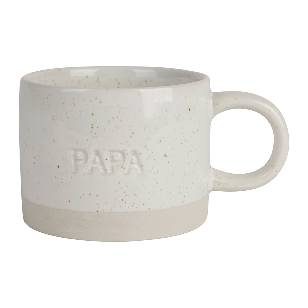 Découvrez la tasse en grès écru moucheté conçue spécialement pour papa, un choix parfait pour savourer ses moments de détente autour d'un bon thé.