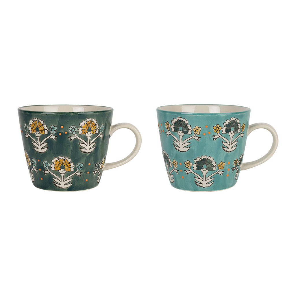 05 56 69 68 67-contact@fabriquedestyles.frTasse à thé x2 en grès turquoise et émeraude 35cl - Vencia