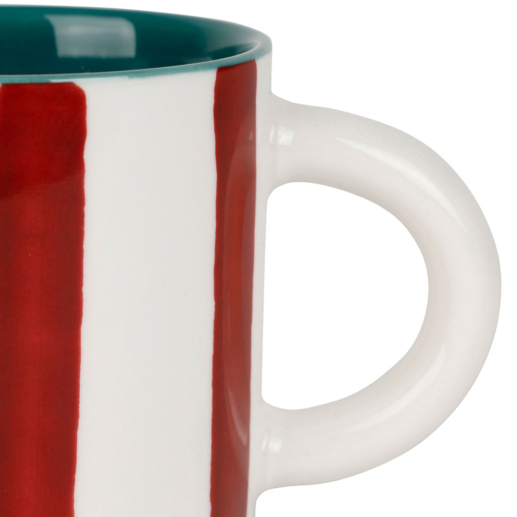 La tasse en grès rayée combine astucieusement des tons terracotta et blanc, tandis que son intérieur émeraude offre un contraste surprenant et original.
