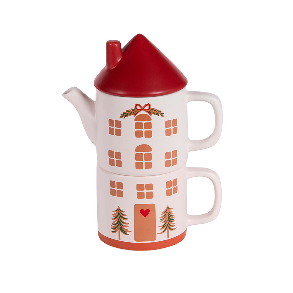 Avec son toit rouge façon cheminée et ses détails festifs (petits sapins, cœur sur la porte, guirlande décorative), elle crée une atmosphère chaleureuse dès la première infusion.