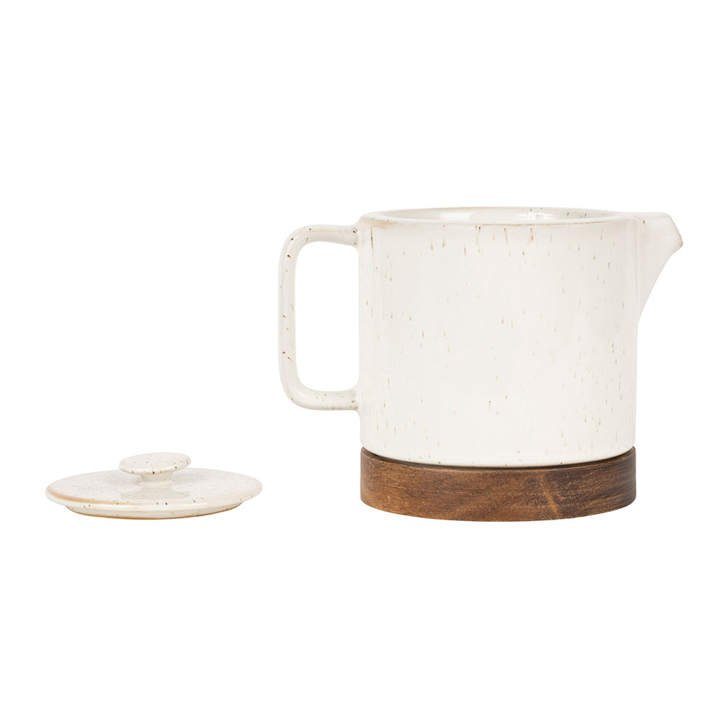05 56 69 68 67-contact@fabriquedestyles.frThéière en grès blanc moucheté et bois avec filtre - nordika
