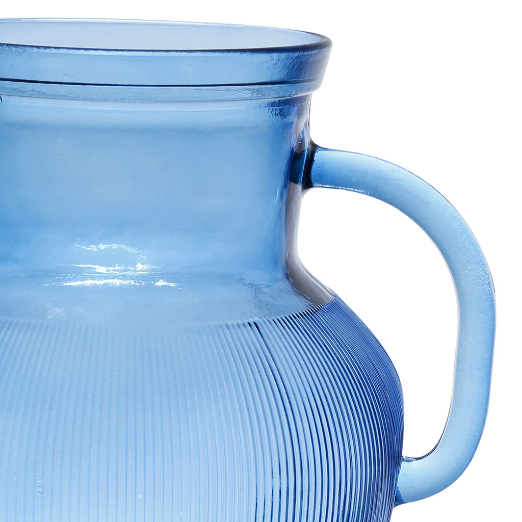 Découvrez le pichet en verre recyclé texturé bleu Aheli de 2,3 litres, un véritable joyau pour votre table.