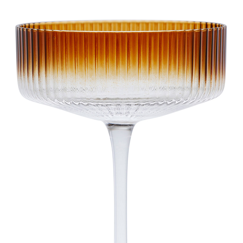 Découvrez notre verre à pied unique en son genre : la coupe de champagne striée en verre ambre.