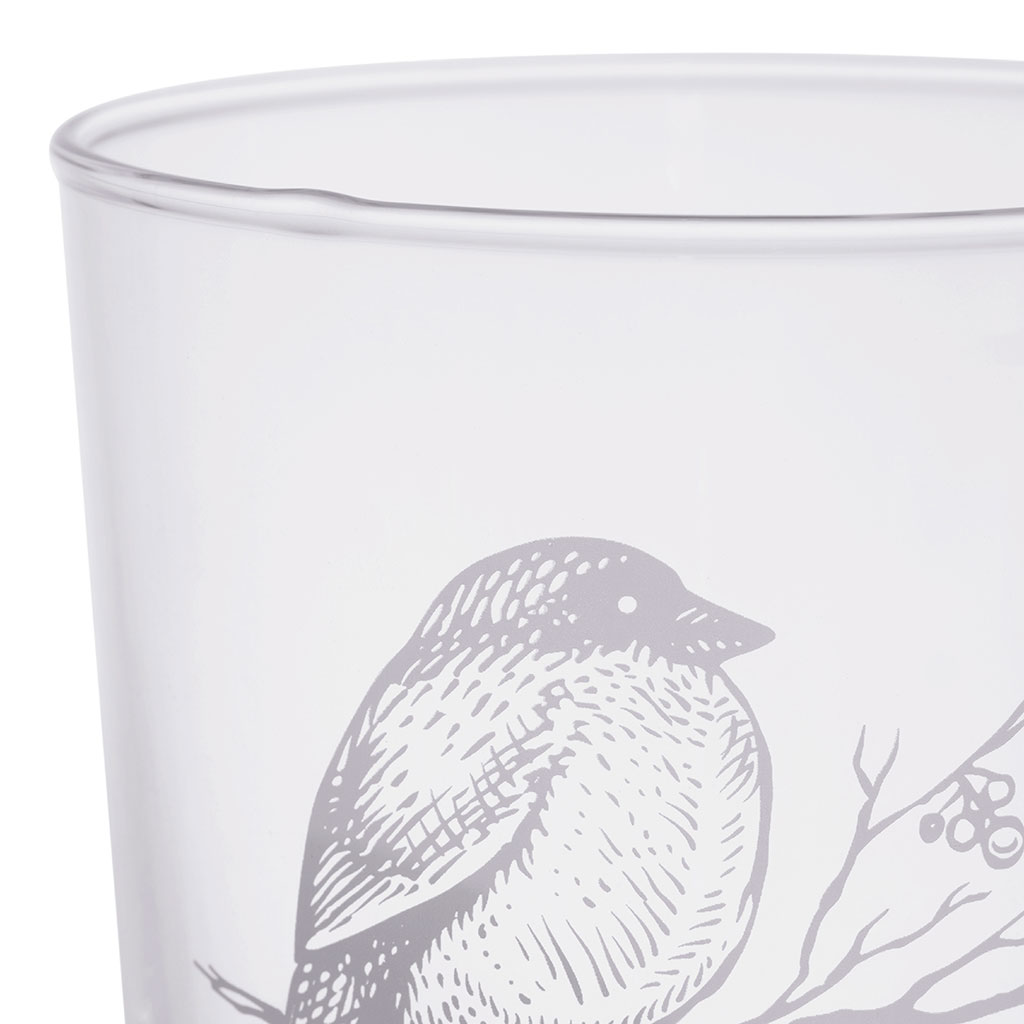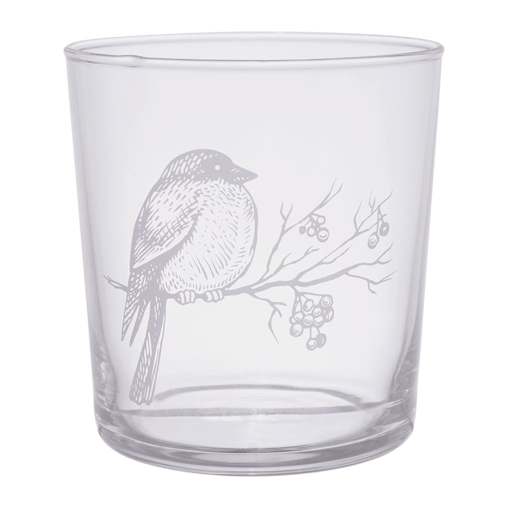 Apportez une touche nature et élégante à votre table avec le gobelet en verre Bodega, orné d’un motif raffiné d’oiseau blanc.