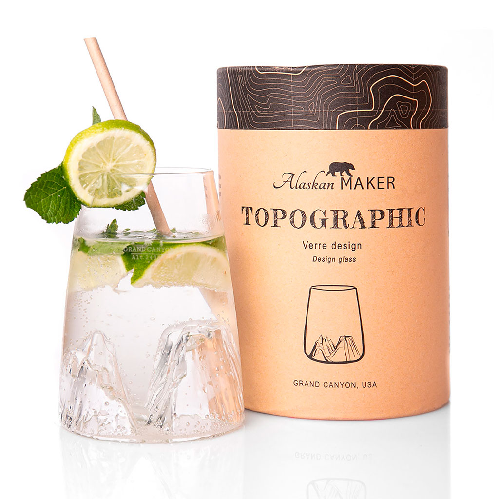 Ce verre aux reliefs topographiques est composé à 100% de verre cristallin de haute qualité et soufflé à la bouche. Dégustez toutes vos boissons au sommet du Grand Canyon !
