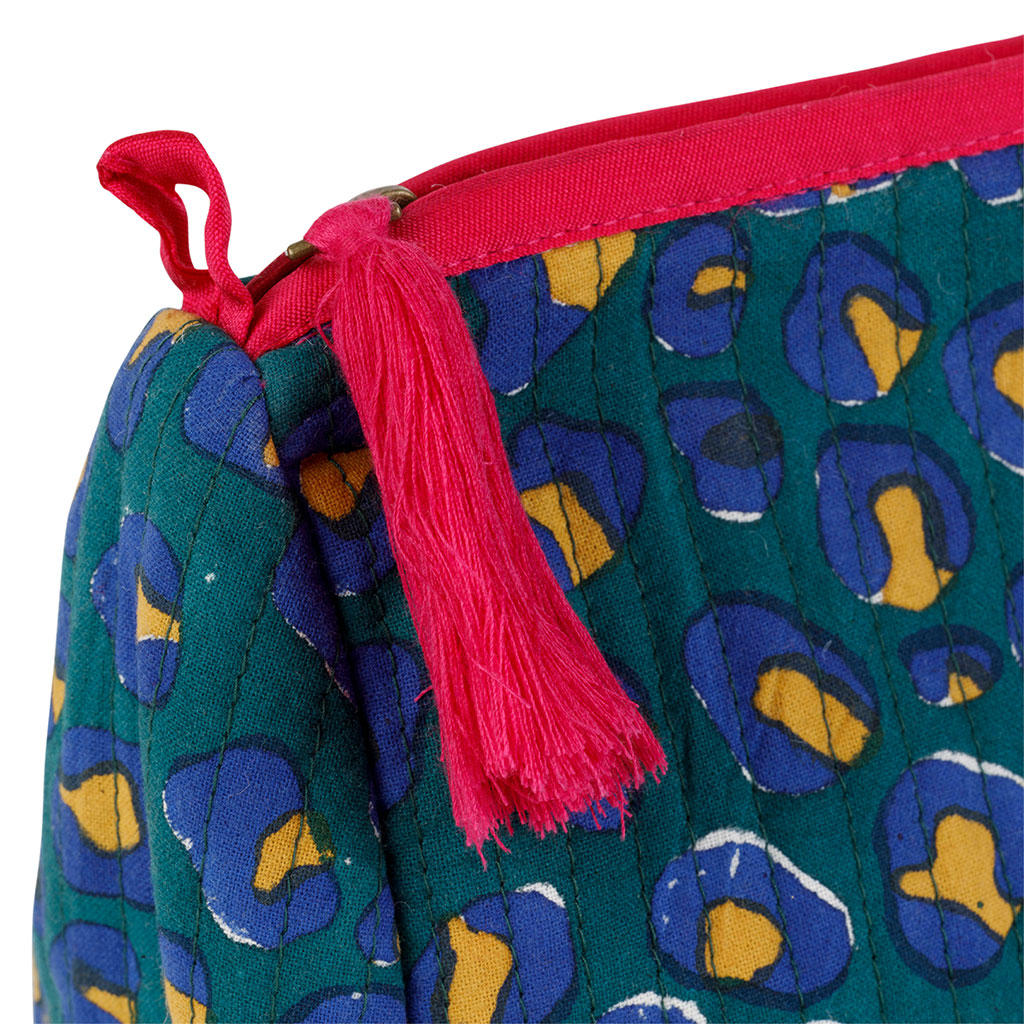 Trousses de toilette x2 en coton léopard bleu et moutarde - Jungle pop