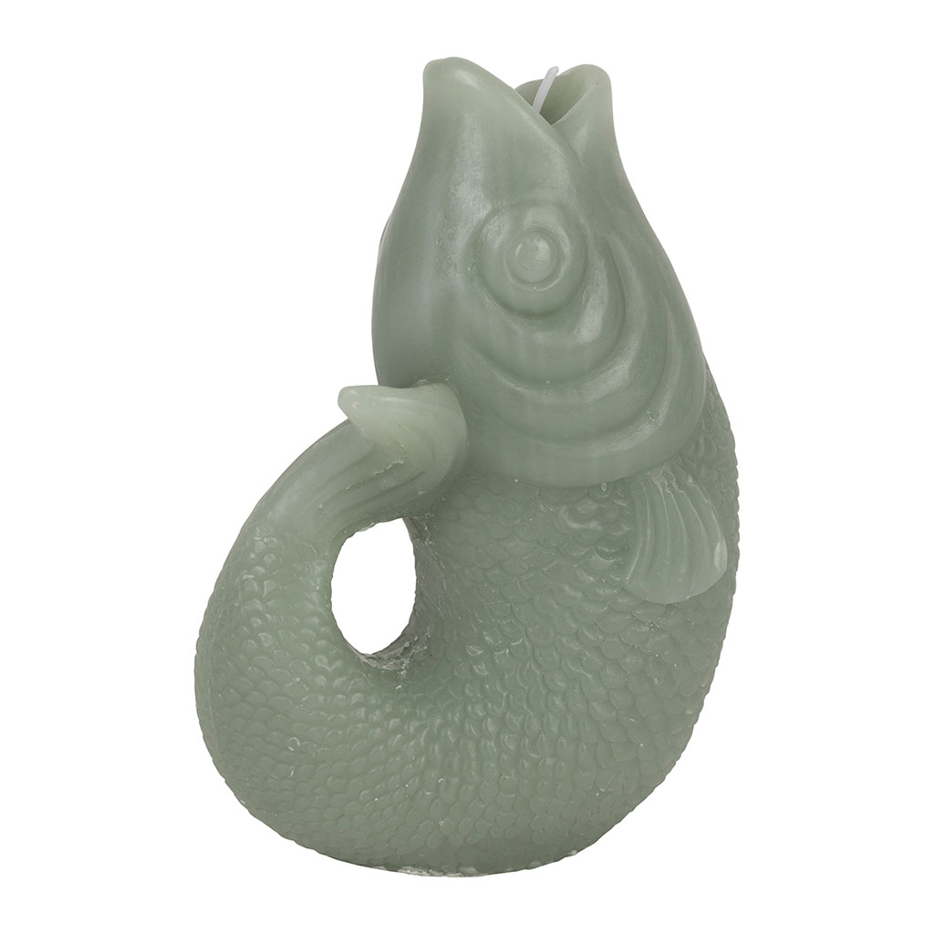 Plongez dans une atmosphère apaisante avec notre bougie en forme de poisson d'un délicat ton vert d'eau.