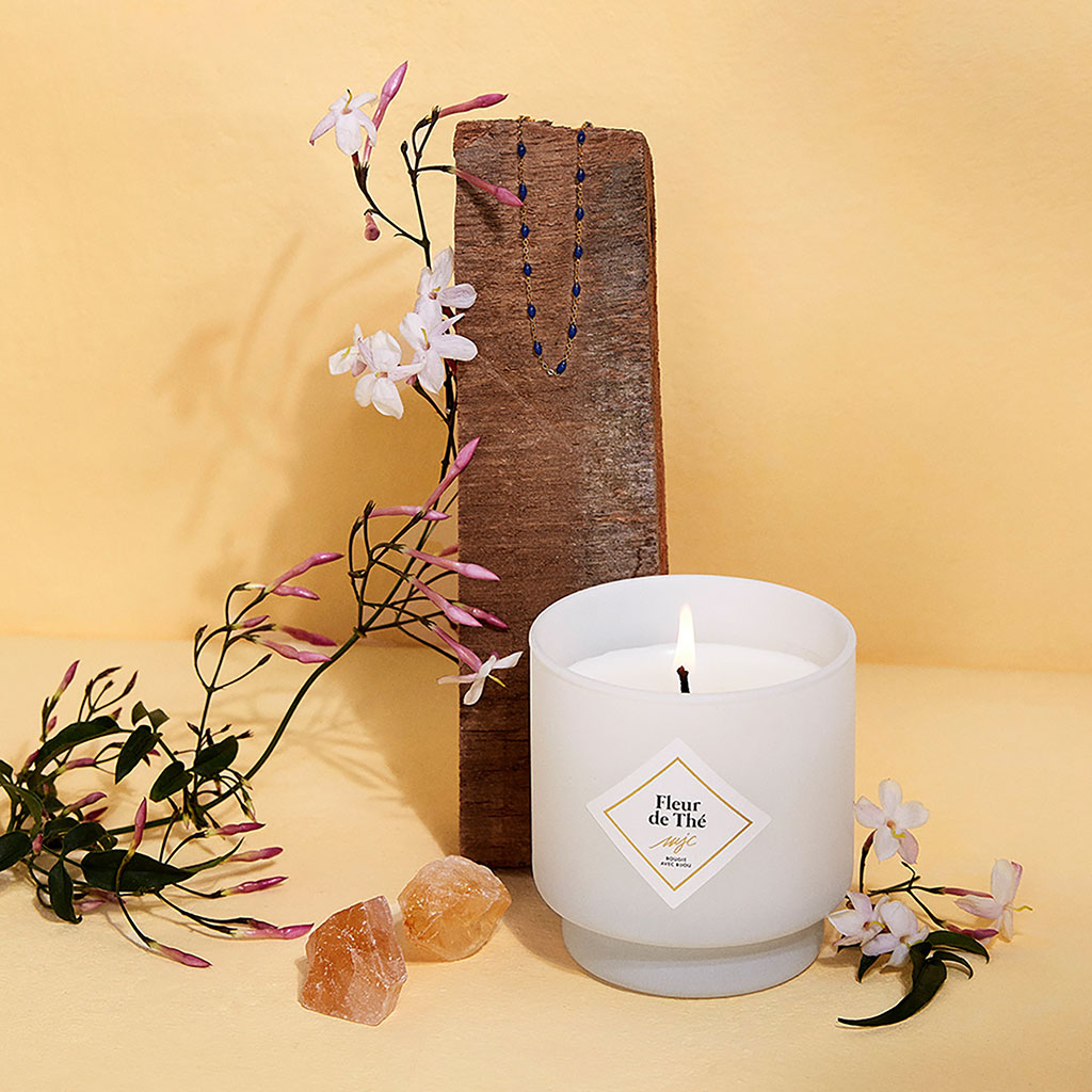 05 56 69 68 67-contact@fabriquedestyles.frBougie Bijou Bracelet Or bille noire Fleur de thé 45h
