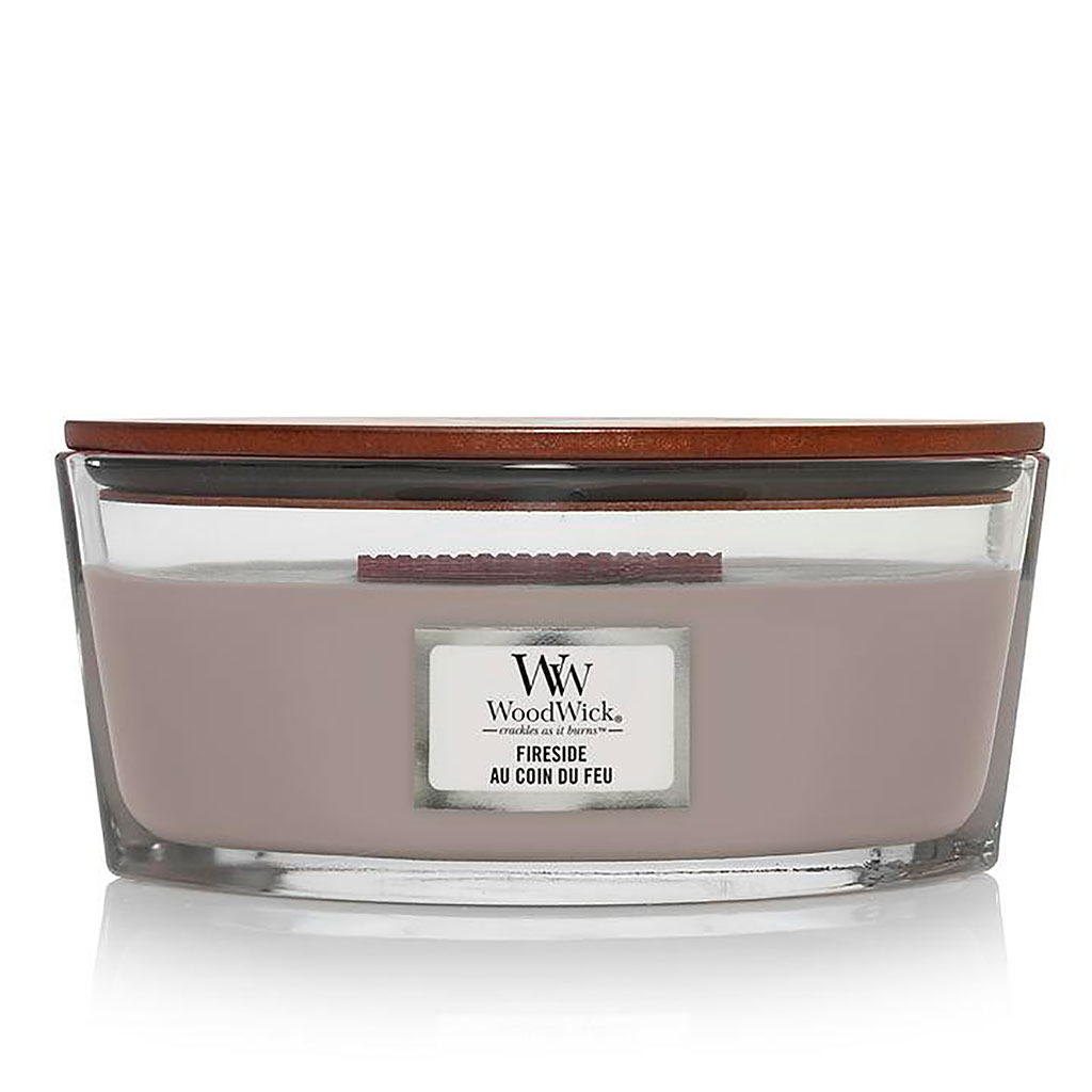Découvrez la chaleureuse et envoûtante Bougie ellipse au coin du feu mini - Woodwick.