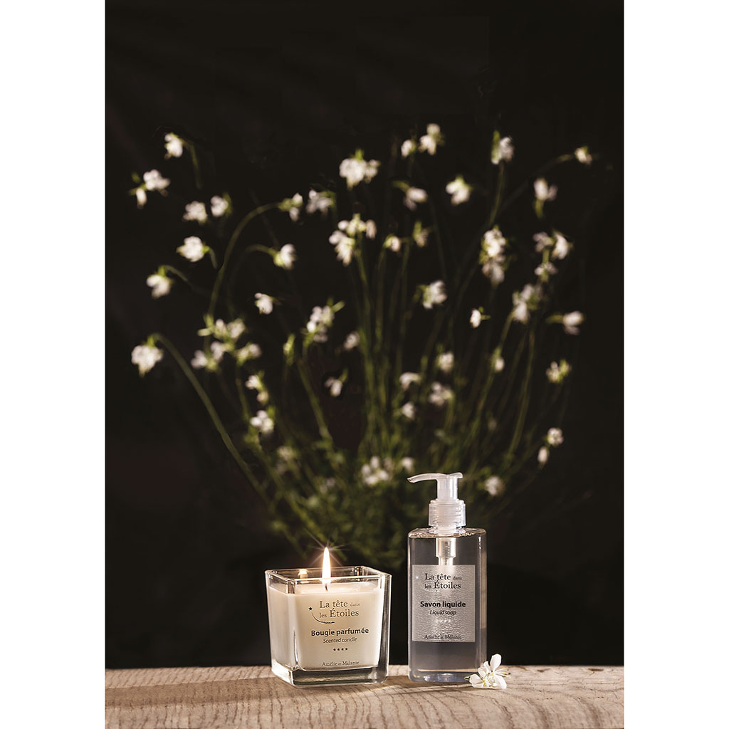 Découvrez l'enchantement olfactif de notre bougie parfumée "La tête dans les étoiles", mêlant subtilement les notes envoûtantes de poivre rose, de rose, et de musc noir.