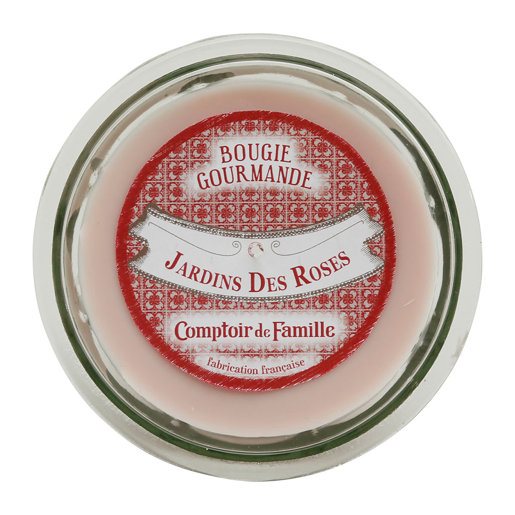 Venez découvrir notre Bougie senteur jardin des r rose poudré d12xh8cm-220g +/-45h paraffine+verre de la marque Comptoir de Famille à découvrir sur Fabrique de Styles.