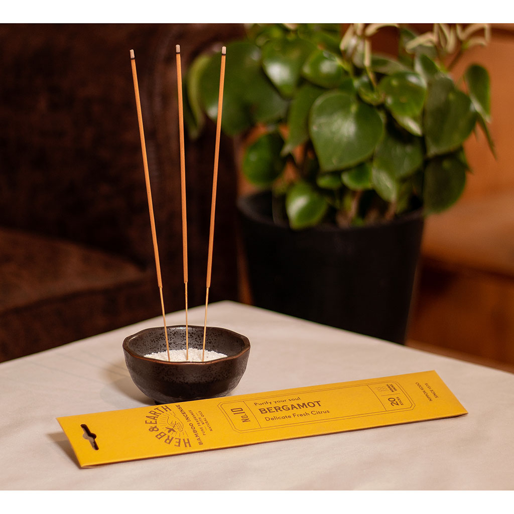 Découvrez un voyage olfactif unique avec notre encens herbe et earth bergamote, conçu spécialement pour vous transporter au-delà du quotidien.