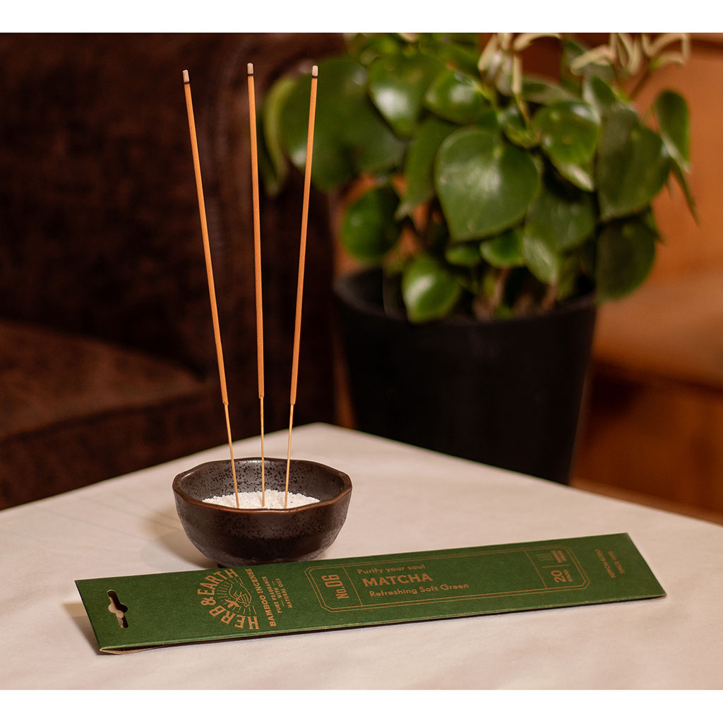 Plongez dans une ambiance apaisante grâce à cet encens unique aux notes d'herbe et de matcha.