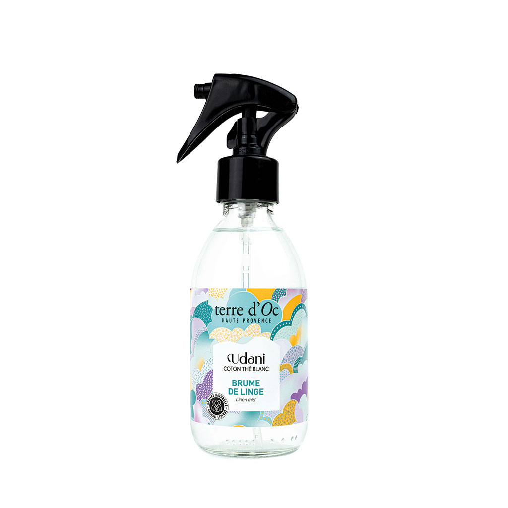 05 56 69 68 67-contact@fabriquedestyles.frBrume de linge parfumee coton the blanc- udani 200ml