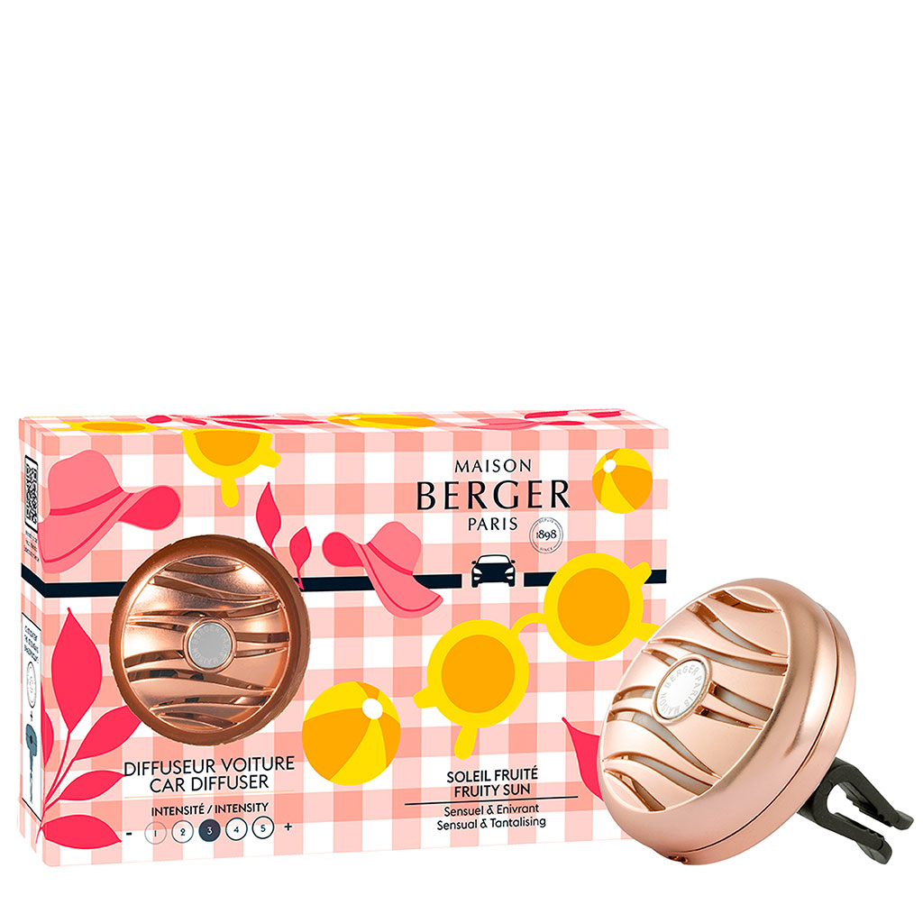 05 56 69 68 67-contact@fabriquedestyles.frDiffuseur pour voiture en métal rose parfumé soleil fruité - Estival